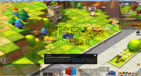 进入《冒险岛2》的瞬间,小编被浓郁的Q版设计迷住了,Q版的人物结合沙盒游戏的世界设计,很大程度上把游戏的环境更自由化了,环境也能活起来和玩家互动,不是单一死板的,景物也是可以被玩家利用的!这个是非常新颖的地方。